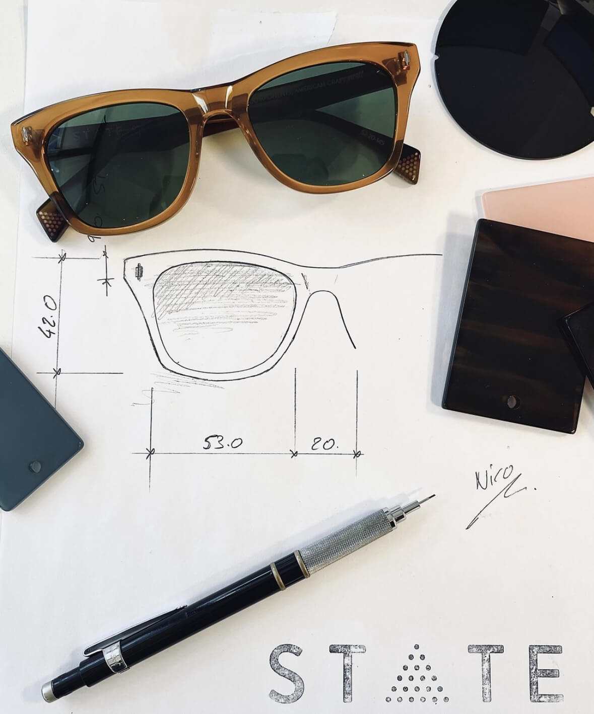 STATE Optical Co. was founded by a group of passionate eyewear innovators who wanted to bring luxury eyewear manufacturing back to the United States. With determination and a vision for independence, they built one of the only facilities in the country capable of producing high-end acetate frames from start to finish. From the very beginning, STATE has been about more than just glasses — it’s about honoring craftsmanship, celebrating individuality, and proving that American-made eyewear can compete on the world stage.